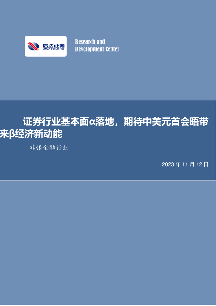 信达证券:非银金融行业:证券行业基本面α落地,期待中美元首会晤带来β经济新动能.pdf