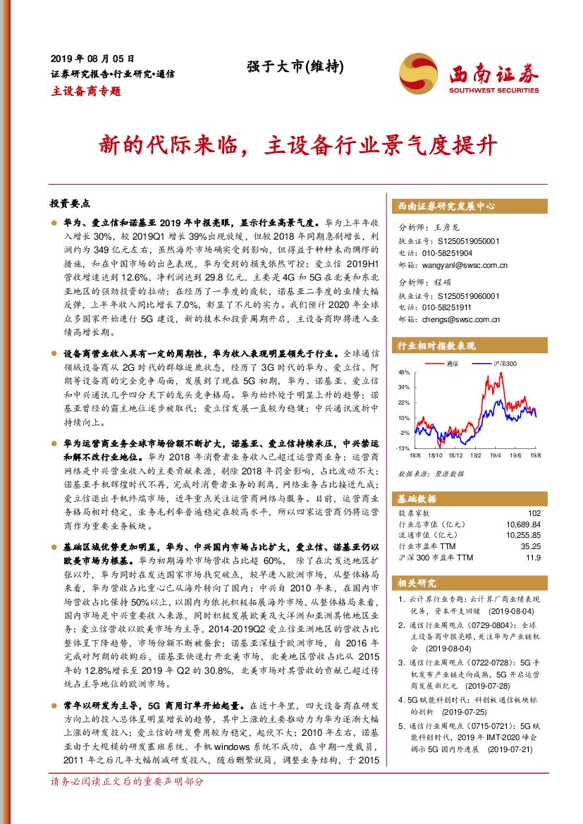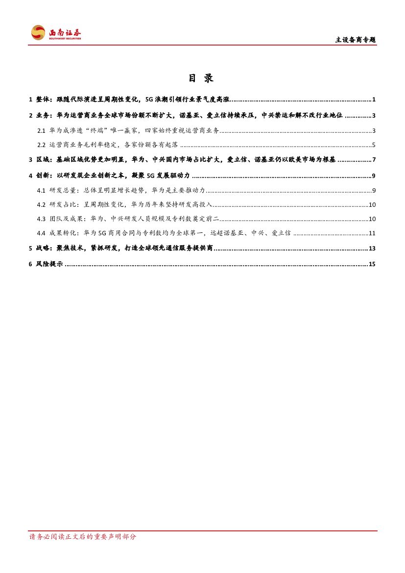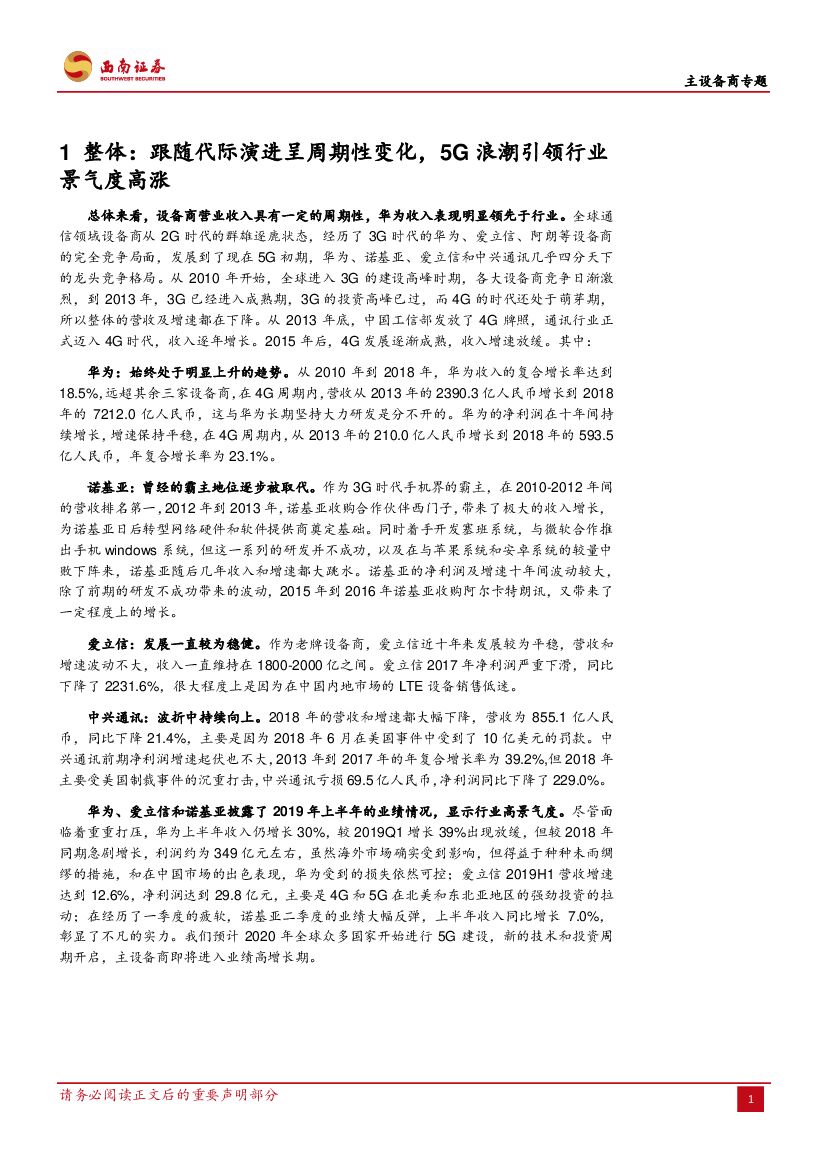 西南证券:主设备商专题:新的代际来临,主设备行业景气度提升.pdf