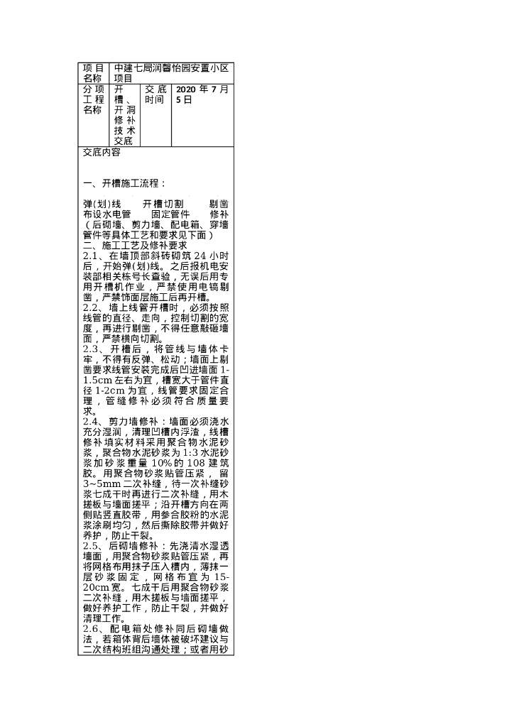 机电开槽及开洞修补技术交底.doc