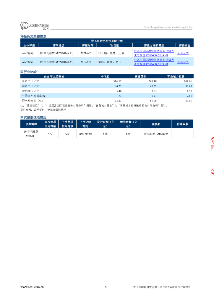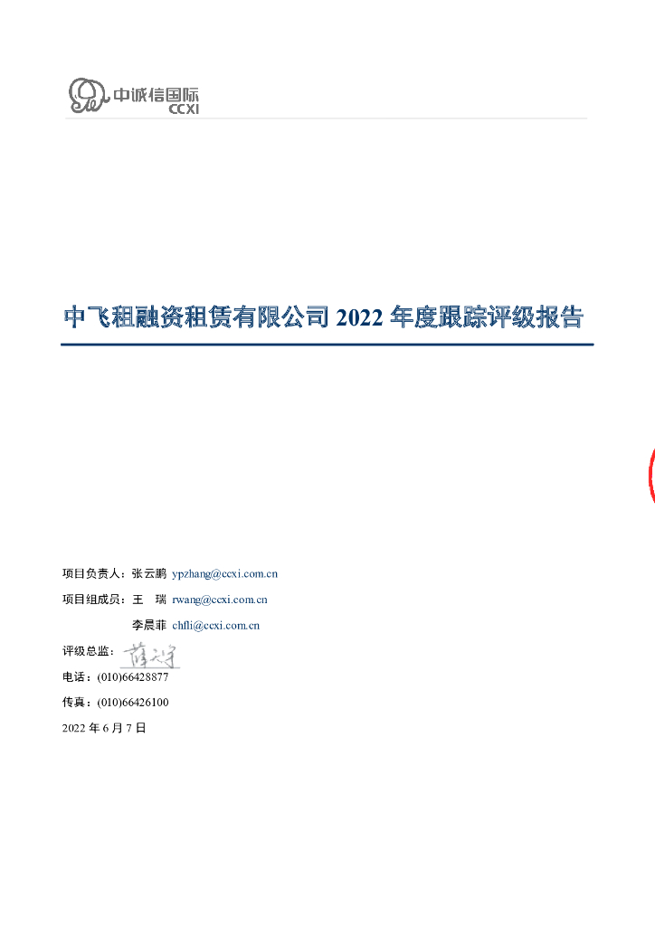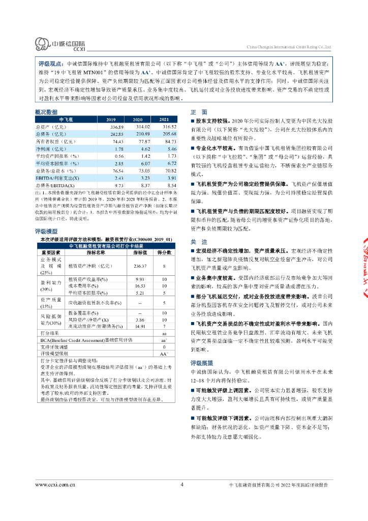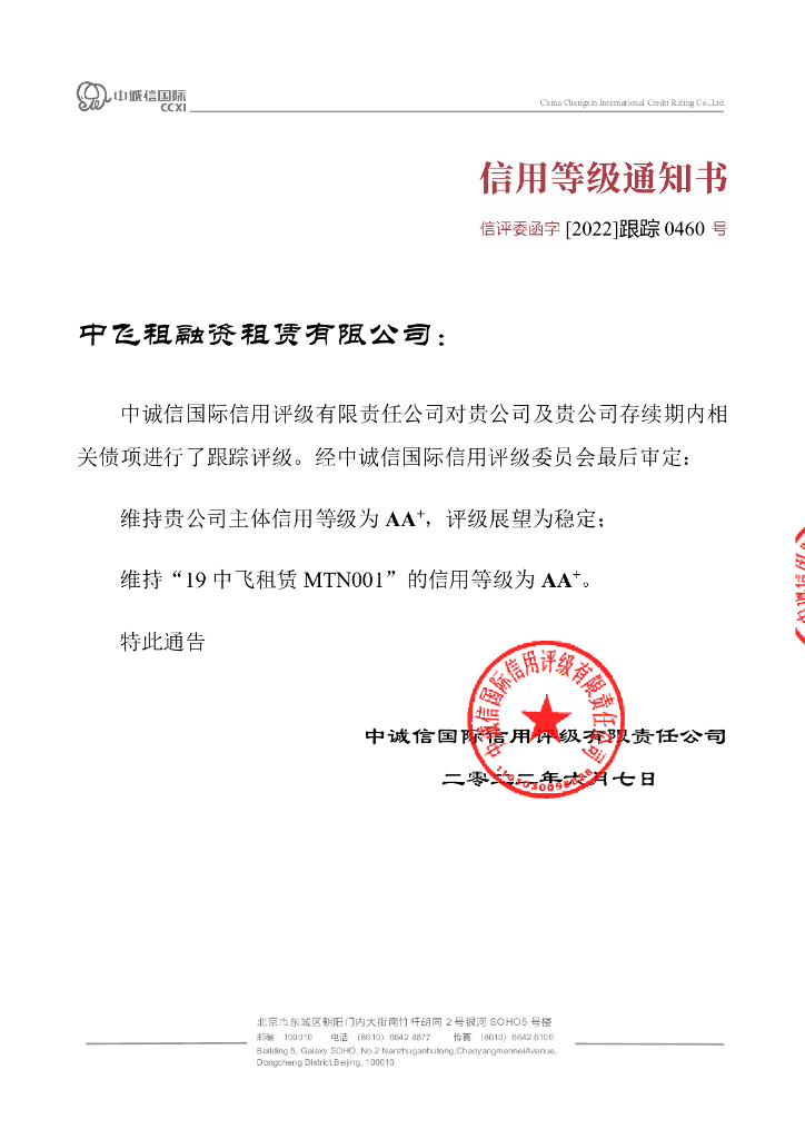 中诚信:中飞租融资租赁有限公司2022年度跟踪评级报告.pdf