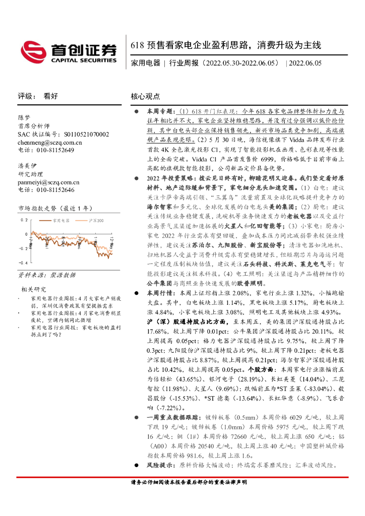 首创证券:家用电器行业周报:618预售看家电企业盈利思路,消费升级为主线.pdf