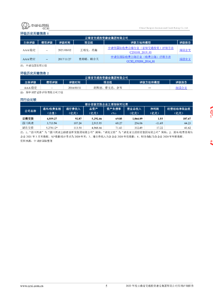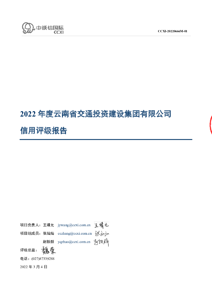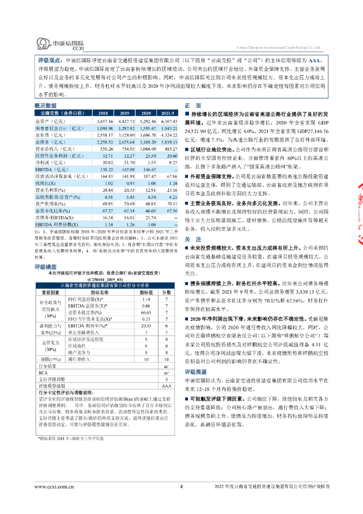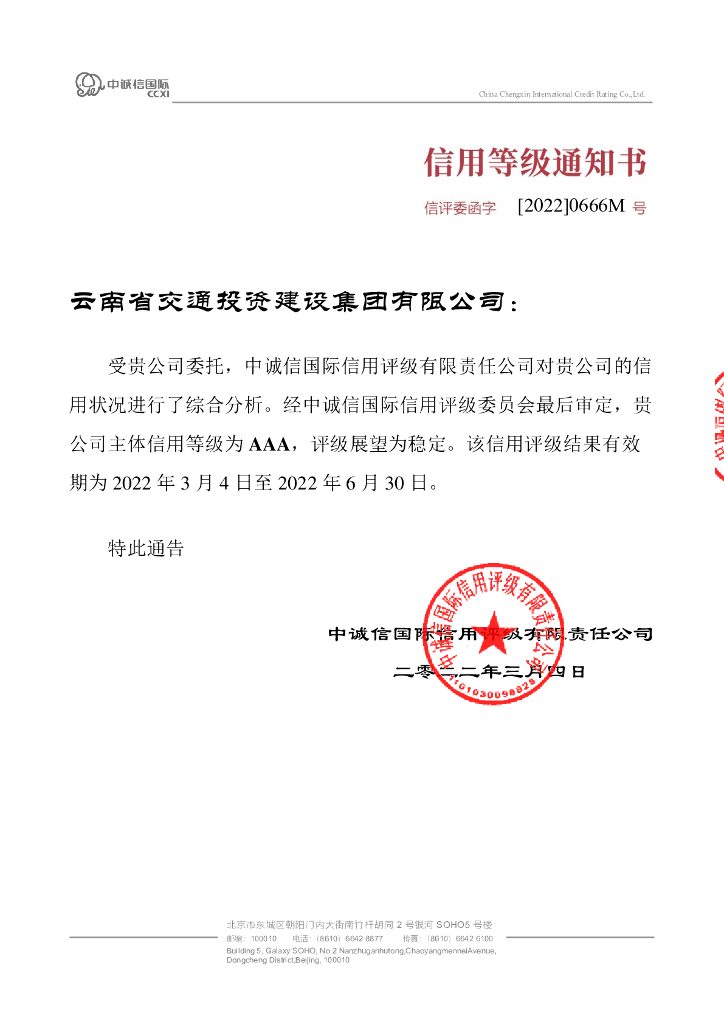 中诚信:2022年度云南省交通投资建设集团有限公司信用评级报告.pdf