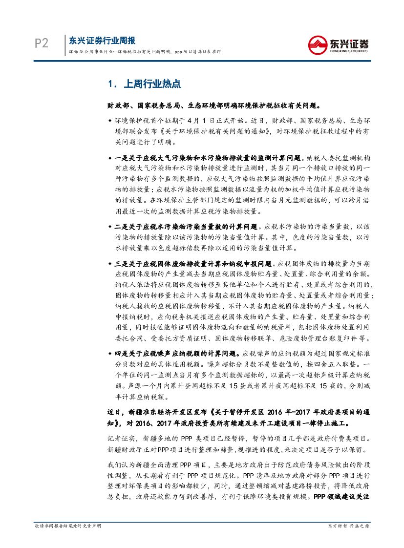 东兴证券:环保及公用事业行业周报:环保税征收有关问题明确,PPP项目清库结束在即.pdf