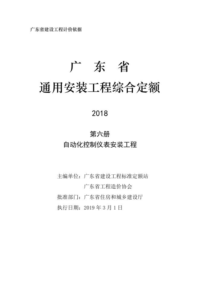 广东省通用安装工程综合定额2018 第六册 自动化控制仪表安装工程.pdf