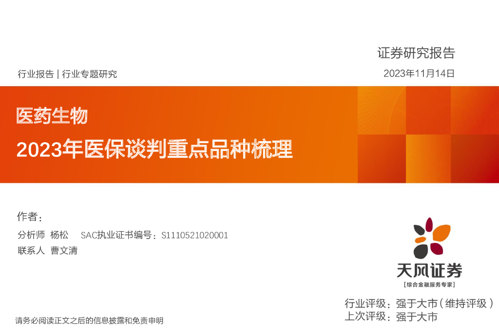 天风证券:医药生物:2023年医保谈判重点品种梳理.pdf