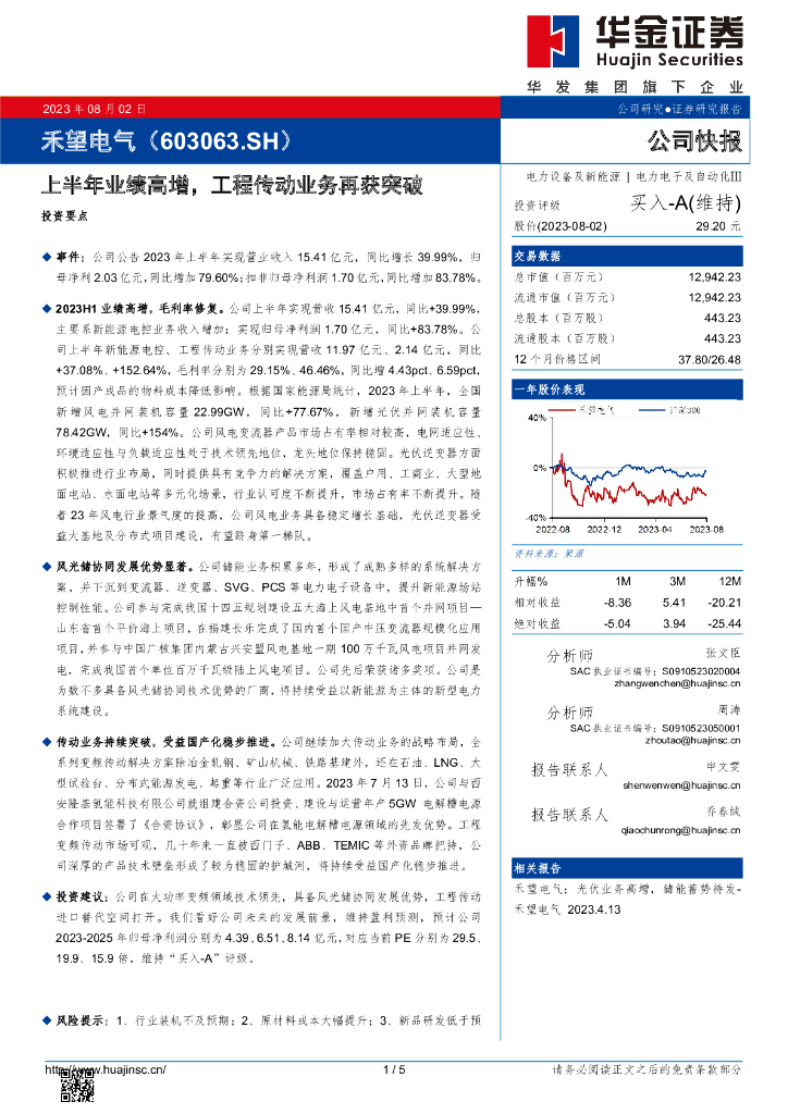 华金证券:禾望电气(603063)-上半年业绩高增,工程传动业务再获突破.pdf