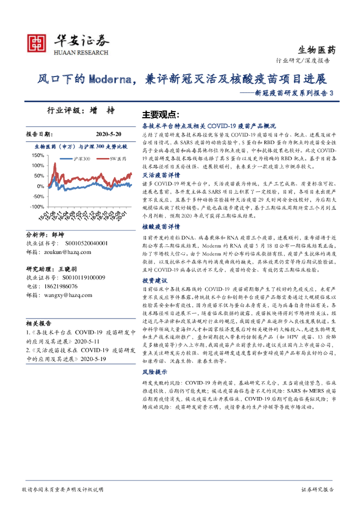 华安证券:新冠疫苗研发系列报告3:风口下的Moderna,兼评新冠灭活及核酸疫苗项目进展.pdf
