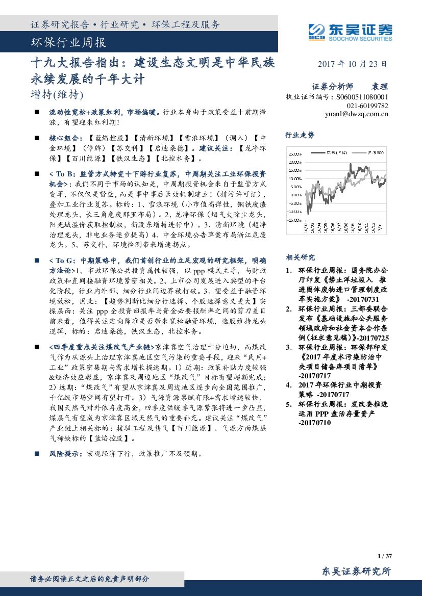 东吴证券:环保行业周报:十九大报告指出:建设生态文明是中华民族永续发展的千年大计.pdf