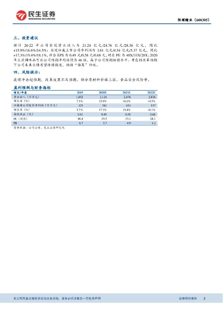 民生证券:恒顺醋业(600305)-19年年报点评:2019年圆满收官,长期变革仍可期.pdf