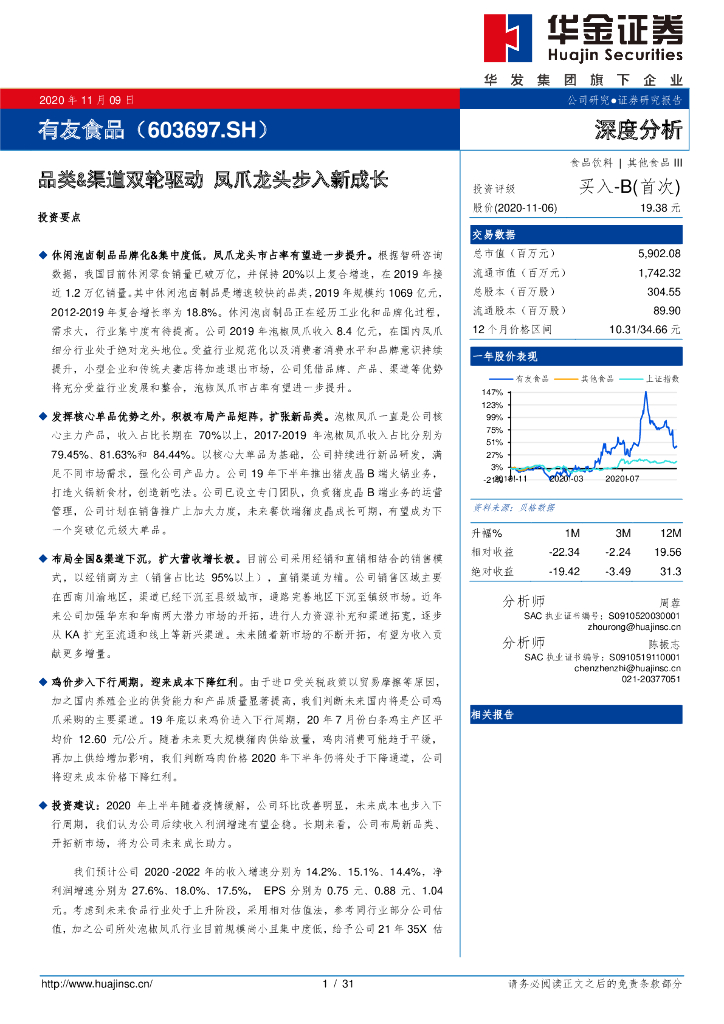 华金证券:有友食品(603697)-品类&渠道双轮驱动 凤爪龙头步入新成长.pdf