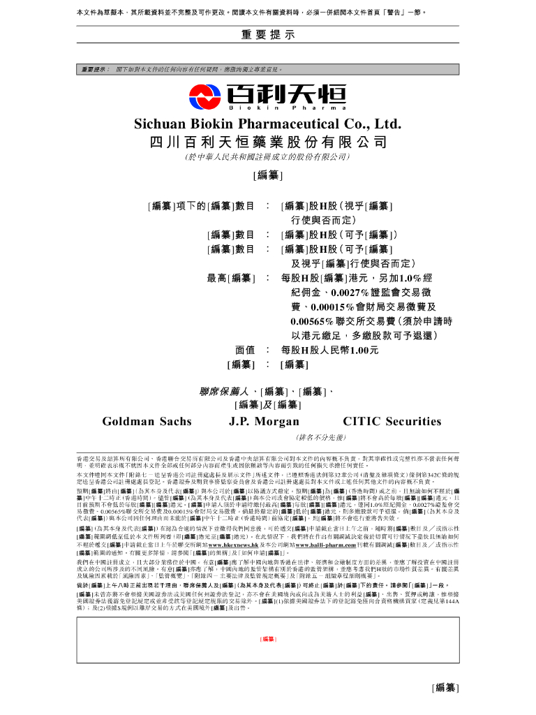 麓鹏制药有限公司港交所IPO上市招股说明书