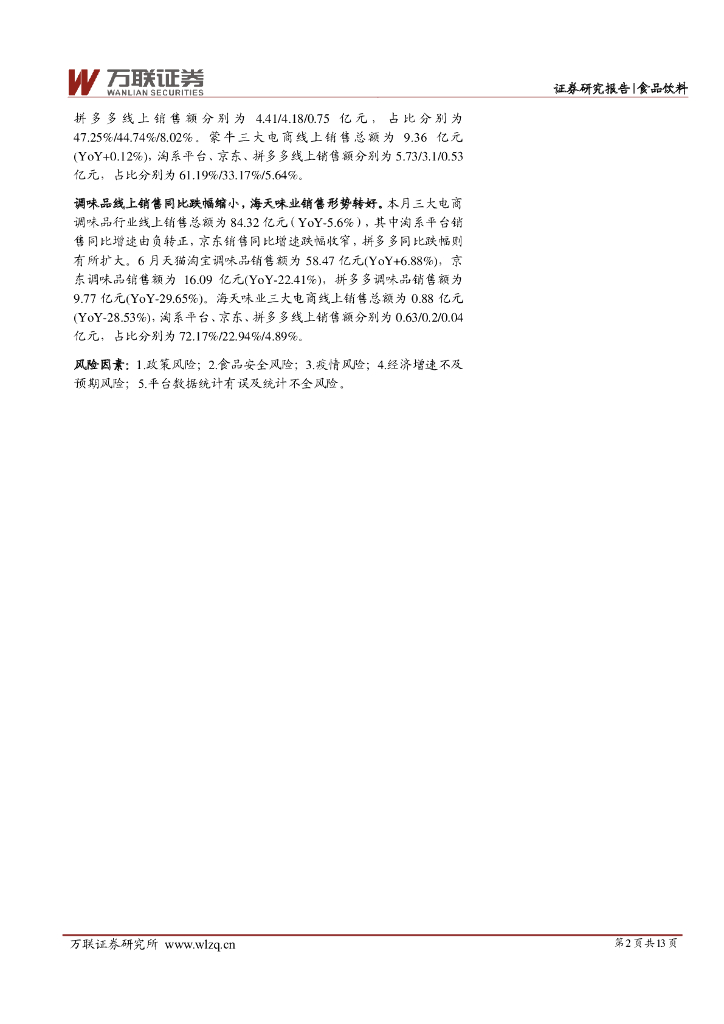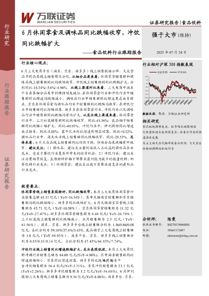 万联证券:食品饮料行业跟踪报告:6月休闲零食及调味品同比跌幅收窄,冲饮同比跌幅扩大.pdf