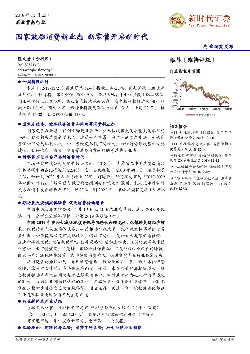 新时代证券:商业贸易行业研究周报:国家鼓励消费新业态 新零售开启新时代.pdf