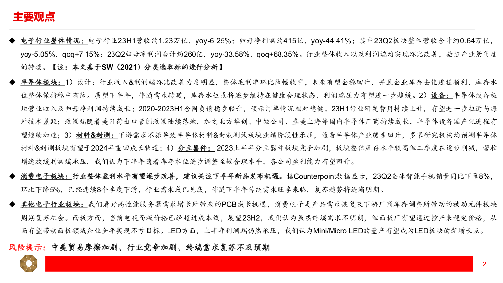 上海证券:电子行业2023年半年报总结:业绩环比改善,建议关注底部布局机会.pdf