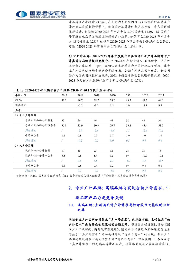 国泰君安证券:户外运动行业系列报告(三):户外行业集中度提升,关注品牌端投资机会.pdf