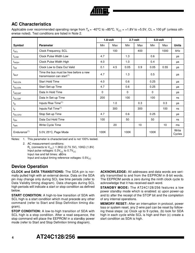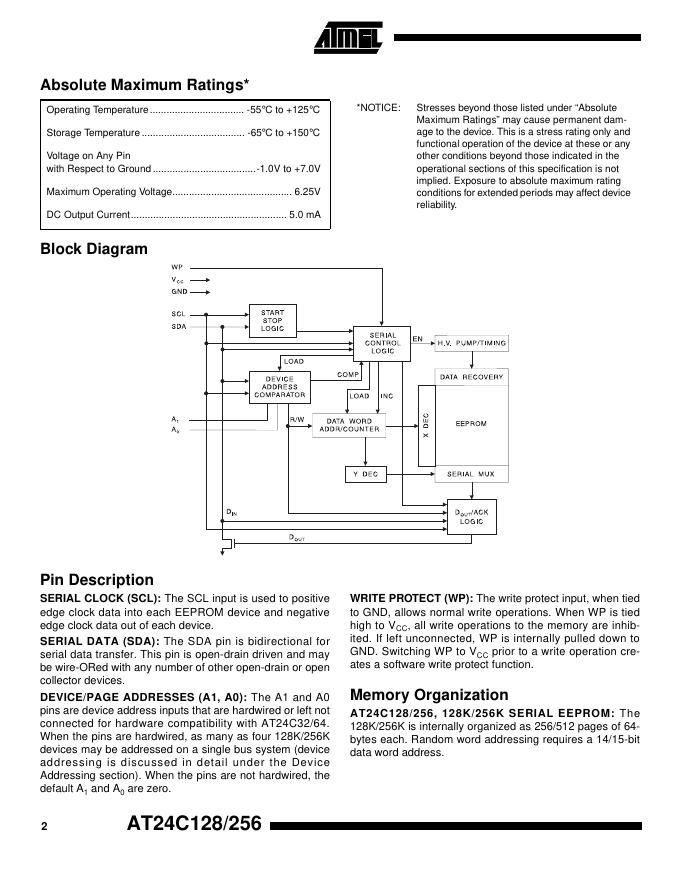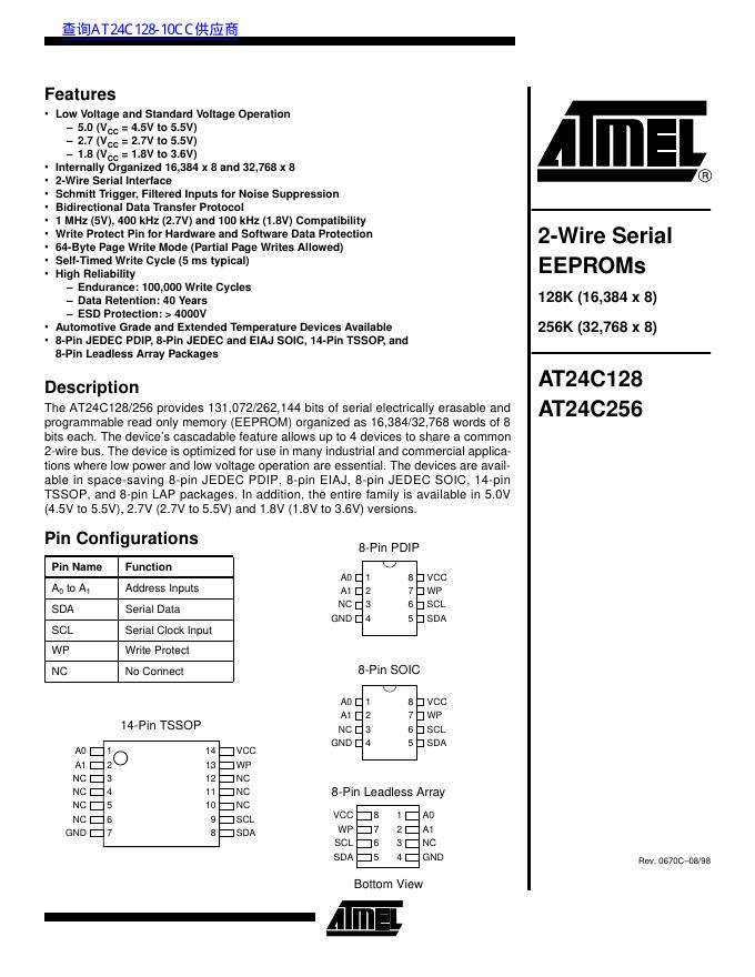 ATMEL AT24C128/AT24C256 数据手册.pdf