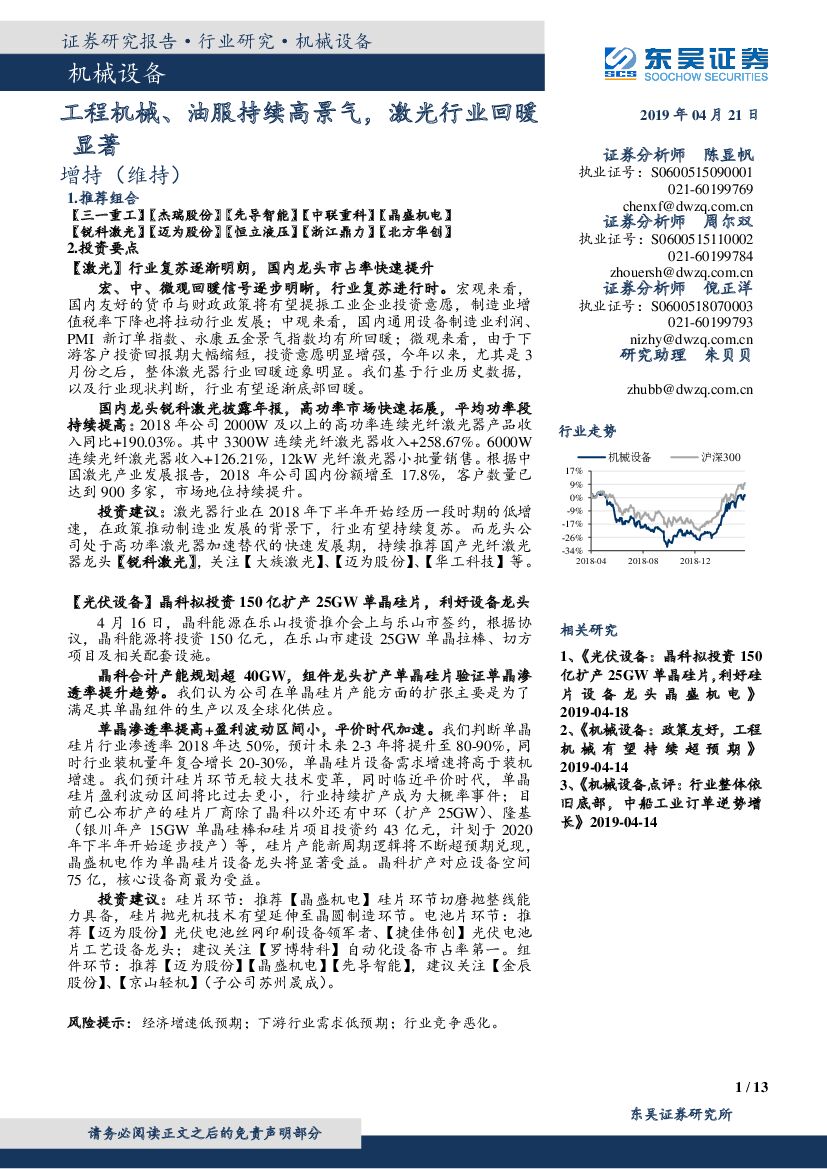 东吴证券:机械设备:工程机械、油服持续高景气,激光行业回暖显著.pdf