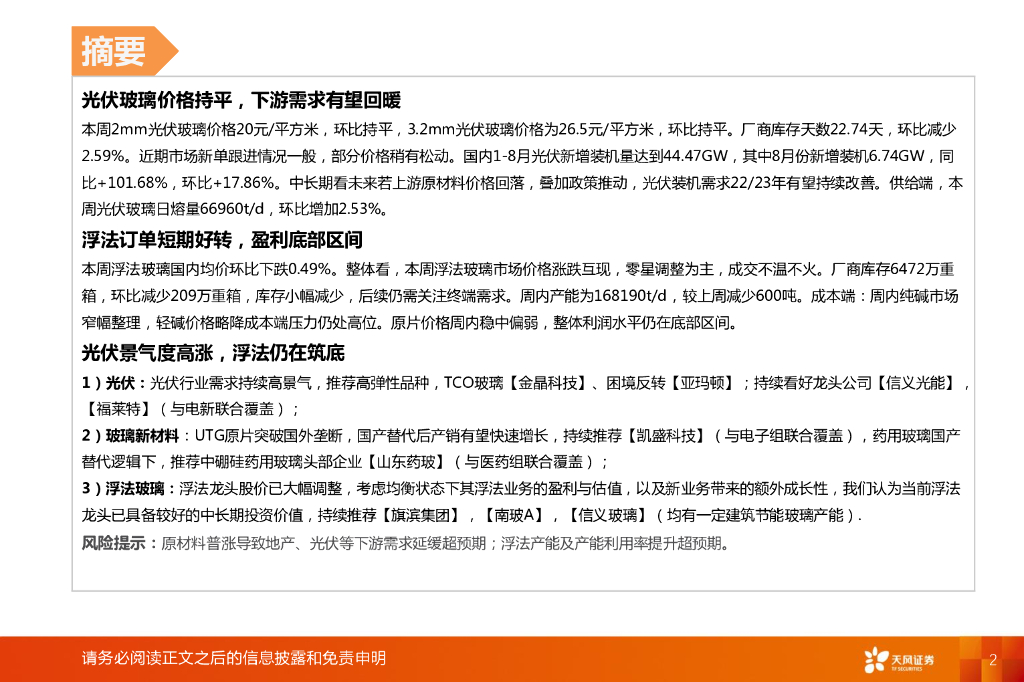 天风证券:玻璃制造行业研究周报:浮法库存开始下降,光伏玻璃产能缓慢释放.pdf