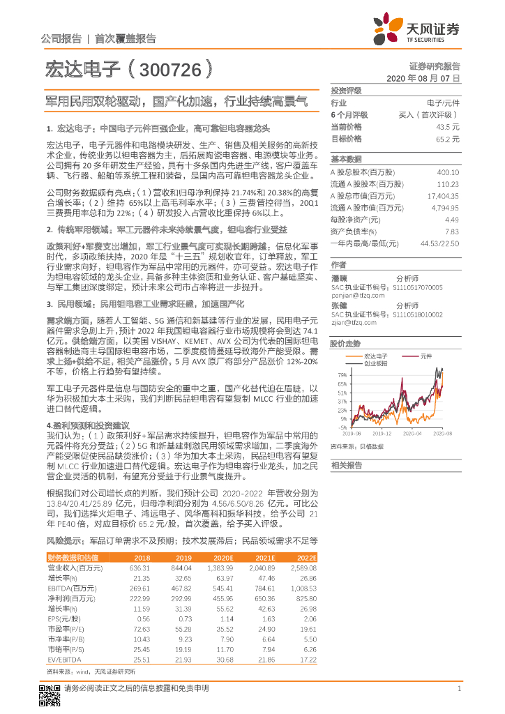 天风证券:宏达电子(300726)-军用民用双轮驱动,国产化加速,行业持续高景气.pdf