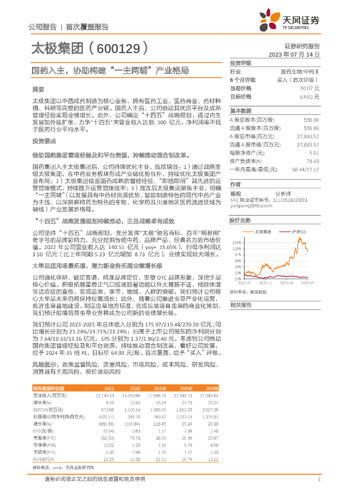 天风证券:太极集团(600129)-国药入主,协助构建“一主两辅”产业格局.pdf