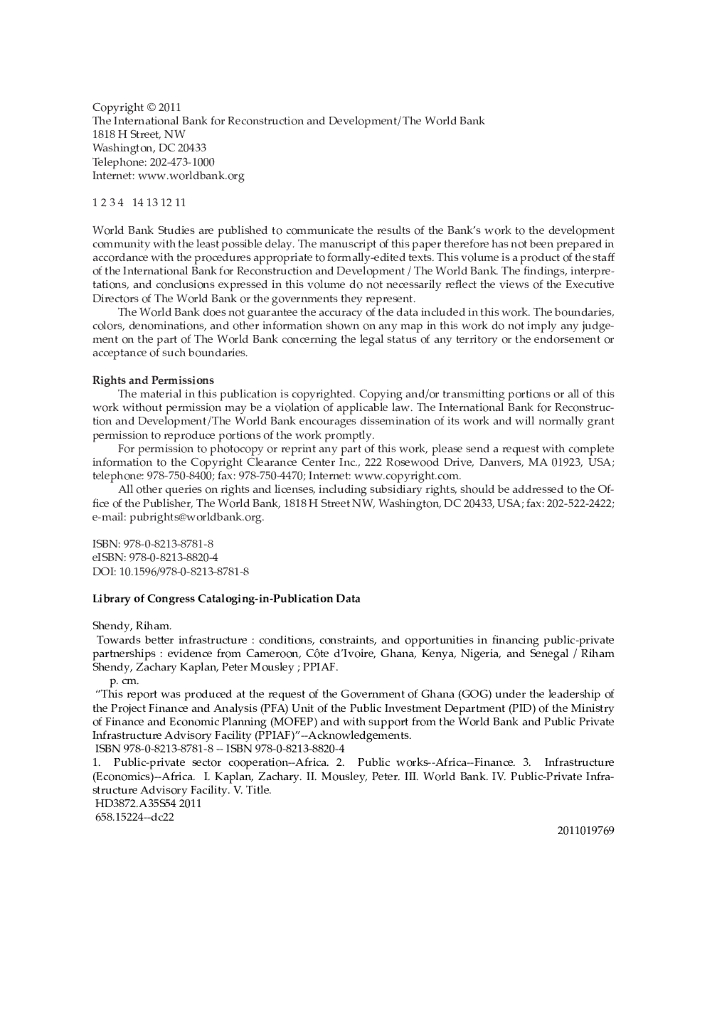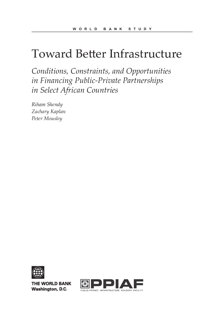 世界银行:发展方向报告-迈向更好的基础设施:部分非洲国家为公私伙伴关系融资的条件、制约因素和机会(英文版).pdf