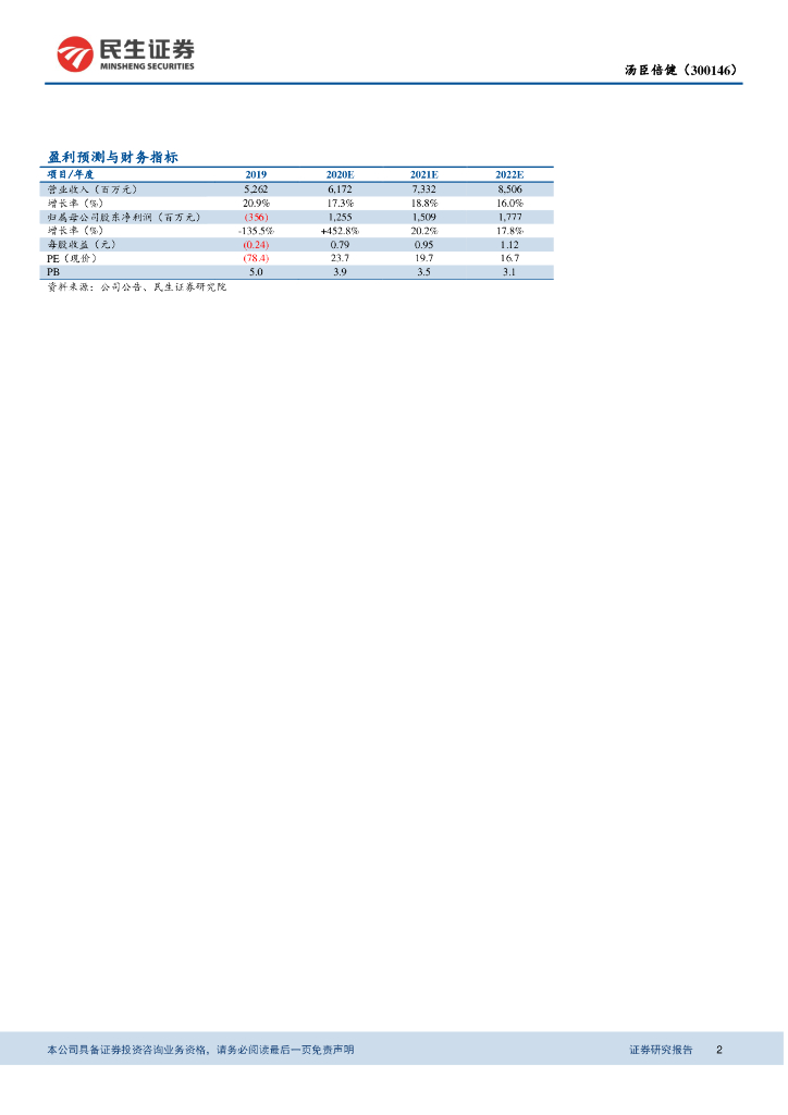 民生证券:汤臣倍健(300146)-2020年一季报点评:Q1疫情影响国内主品牌业务,境外业务增长良好.pdf