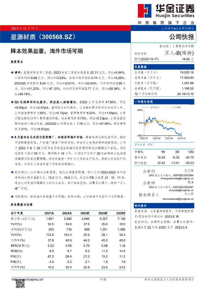 华金证券:星源材质(300568)-降本效果显著,海外市场可期.pdf