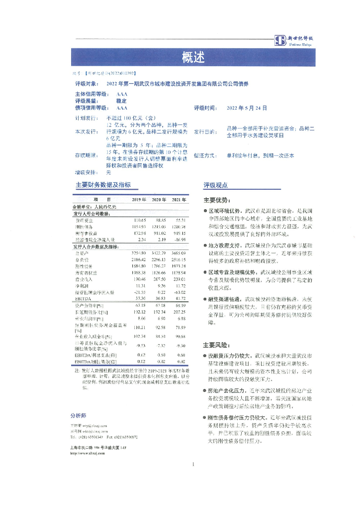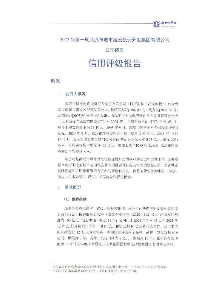 新世纪:2022年第一期武汉市城市建设投资开发集团有限公司公司债券信用评级报告.pdf