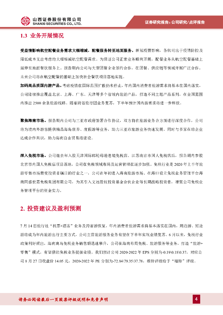 山西证券:凯撒旅业(000796)-疫情或将影响年内业绩,关注免税行业布局进程.pdf