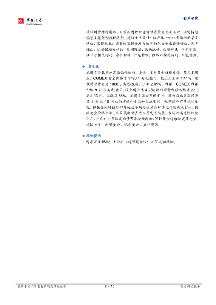 华安证券:有色金属行业周报:基本金属价格震荡调整,锂价稳定上行.pdf
