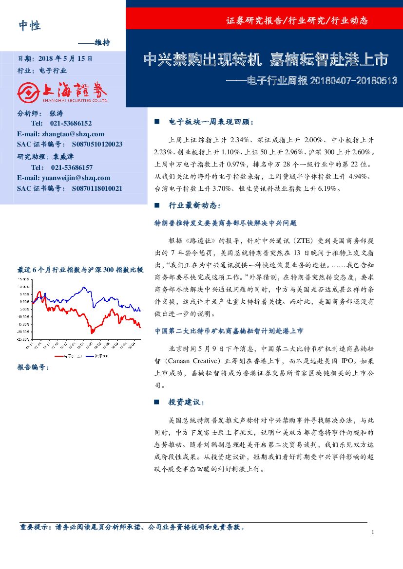 上海证券:电子行业周报:中兴禁购出现转机 嘉楠耘智赴港上市.pdf