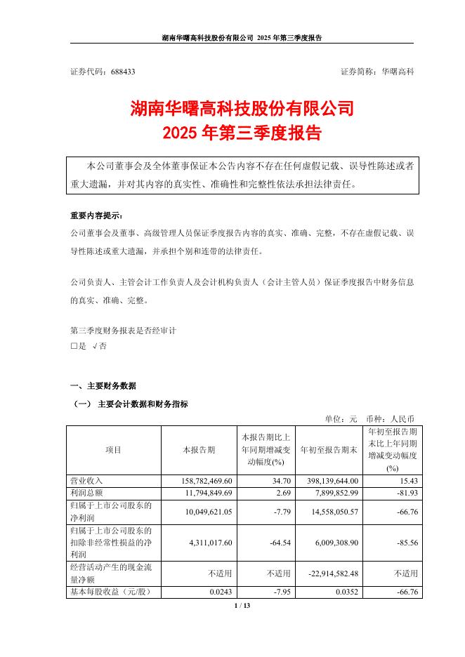 688433-华曙高科:2025年第三季度报告.pdf