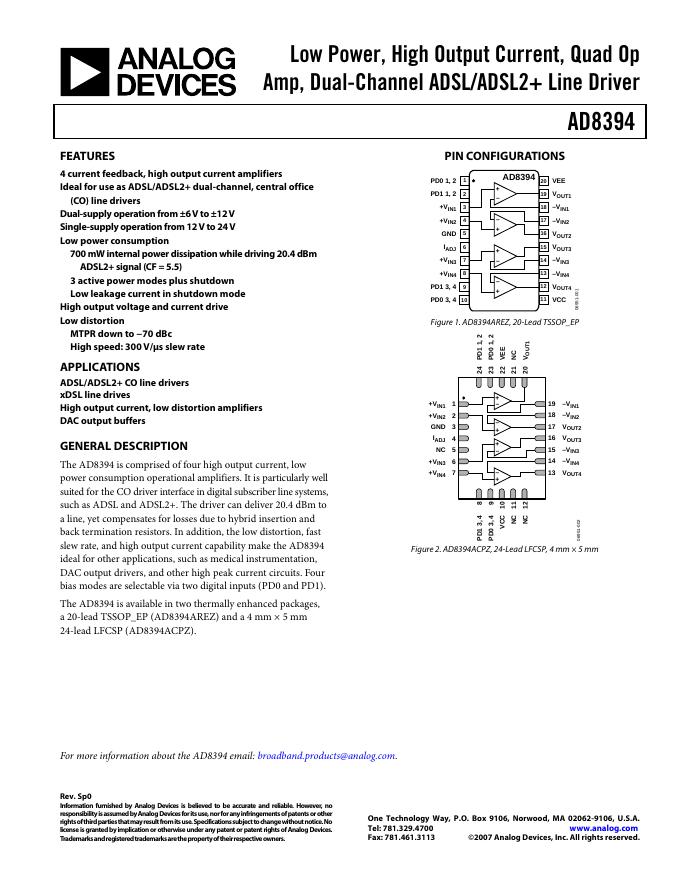ANALOG DEVICES AD8394 英文产品数据手册 Rev Sp0.pdf
