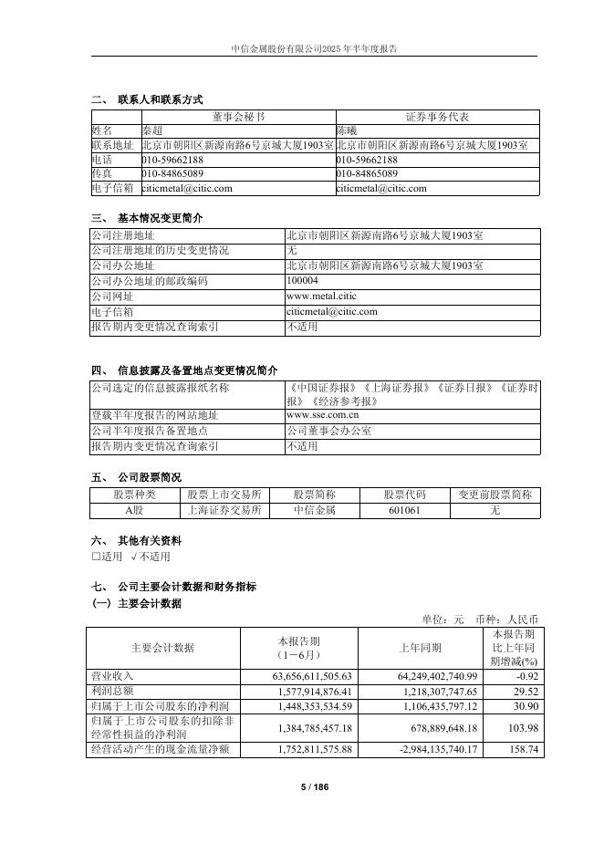 601061-中信金属:中信金属股份有限公司2025年半年度报告.pdf