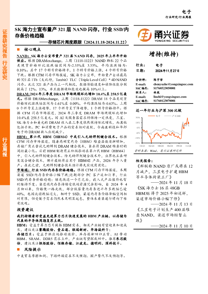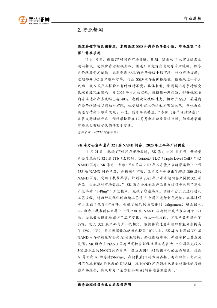 甬兴证券:存储芯片行业周度跟踪:SK海力士宣布量产321层NAND闪存,行业SSD/内存条价格趋稳.pdf