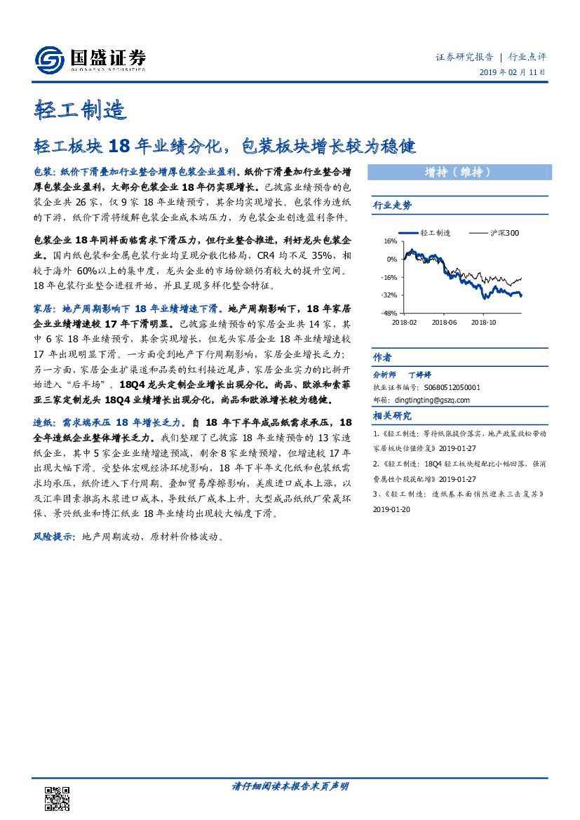 国盛证券:轻工制造:轻工板块18年业绩分化,包装板块增长较为稳健.pdf