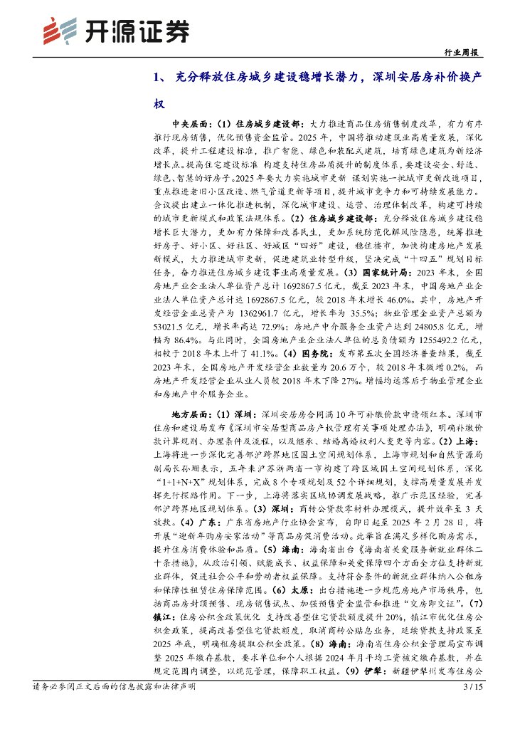 开源证券:房地产行业周报:新房成交面积环比增长,充分释放住房城乡建设稳增长潜力.pdf