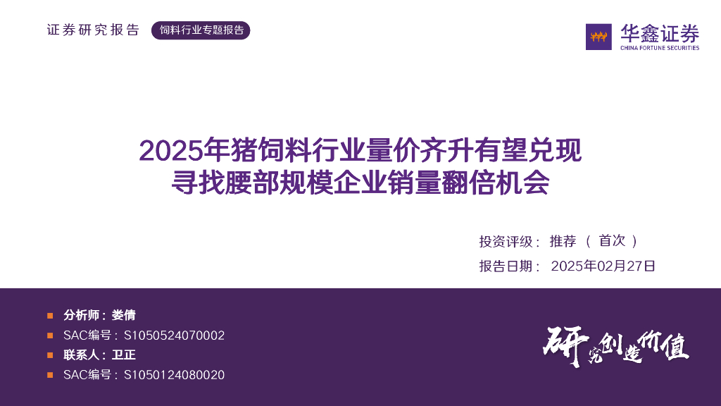 华鑫证券:2025年猪饲料行业量价齐升有望兑现寻找腰部规模企业销量翻倍机会.pdf