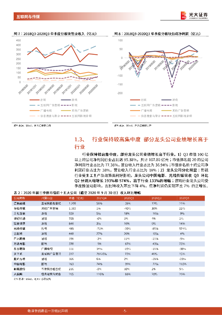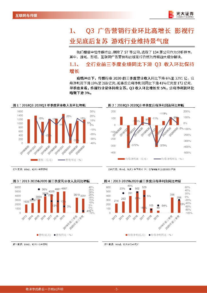 光大证券:光大传媒互联网2020年三季报总结:广告营销环比高增长 影视见底后复苏 游戏维持景气度 现金流持续改善.pdf