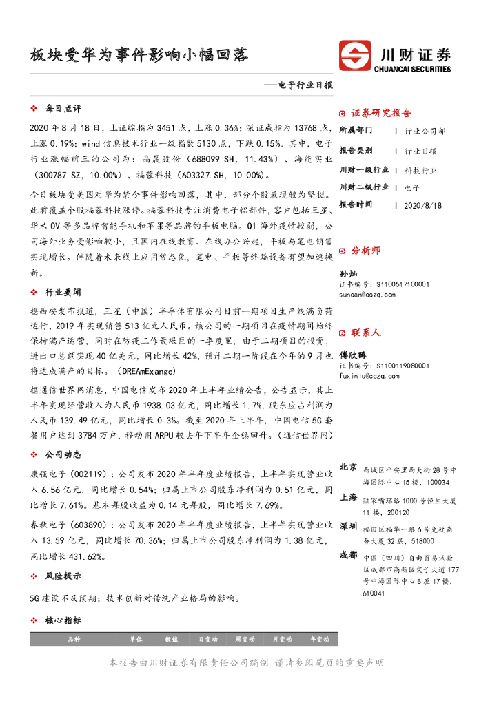 川财证券:电子行业日报:板块受华为事件影响小幅回落.pdf