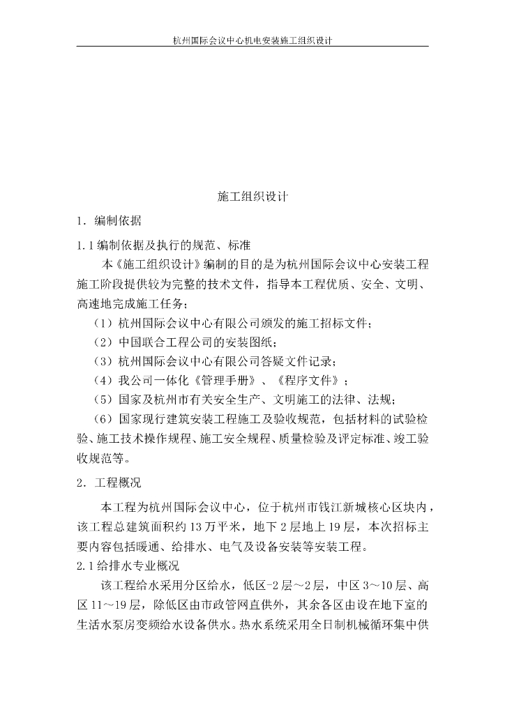 浙江省会议中心机电安装施工组织设计.doc