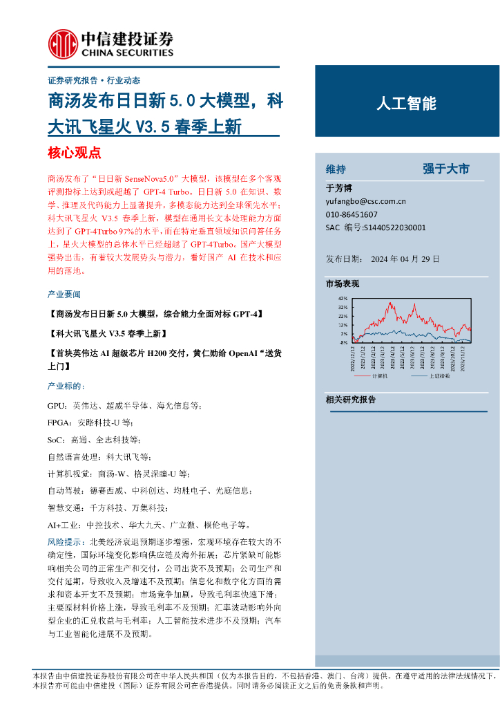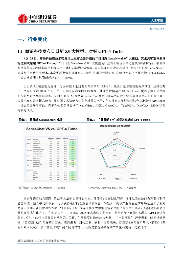 中信建投证券:商汤发布日日新5.0大模型,科大讯飞星火V3.5春季上新.pdf