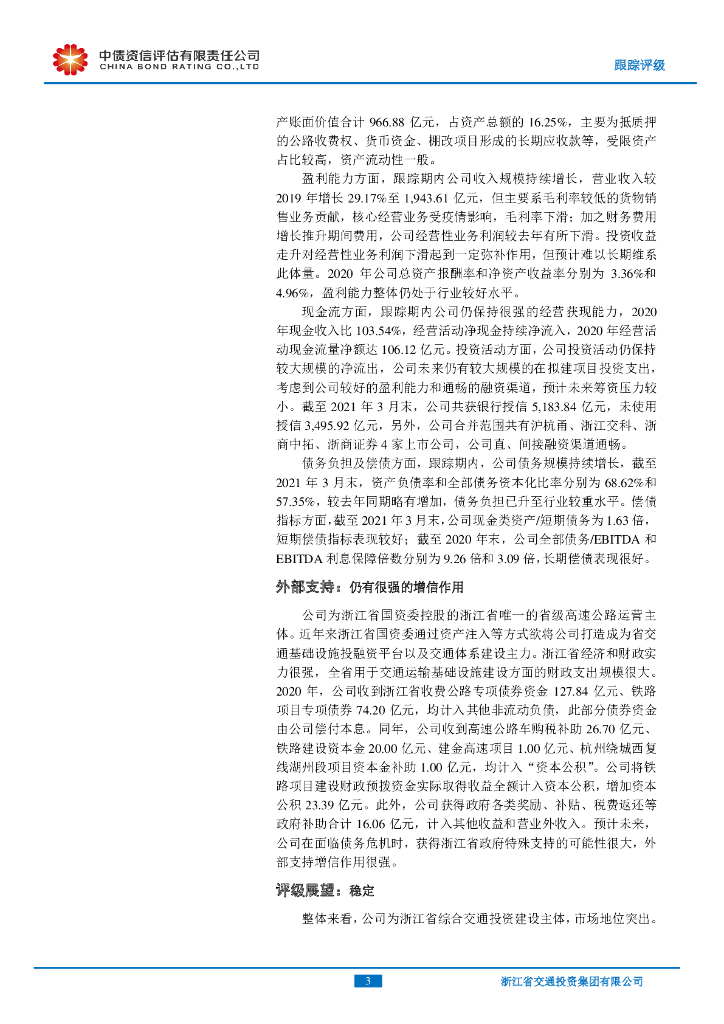 中债资信:浙江省交通投资集团有限公司2021年定期跟踪评级项目.pdf