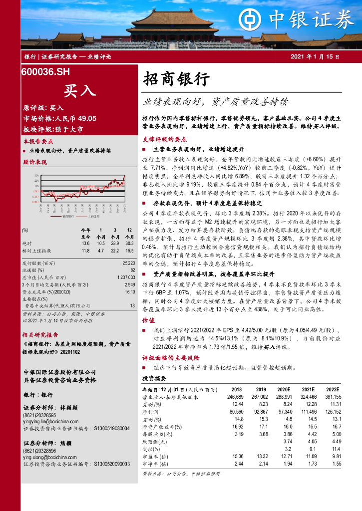 中银证券:招商银行(600036)-业绩表现向好,资产质量改善持续.pdf