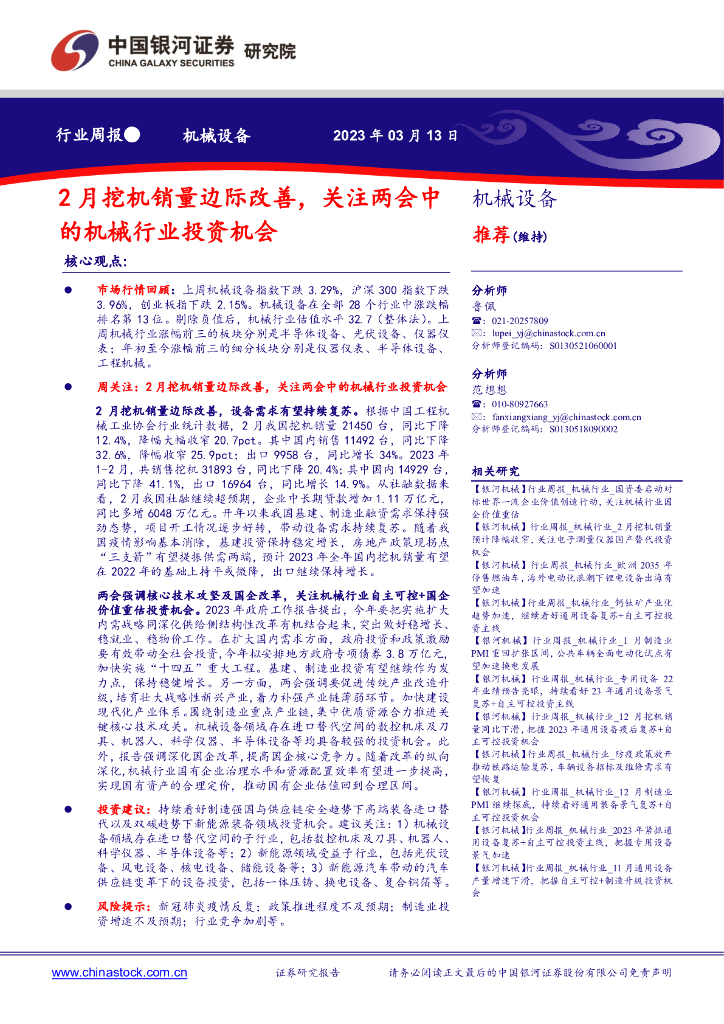 中国银河:机械设备行业周报:2月挖机销量边际改善,关注两会中的机械行业投资机会.pdf