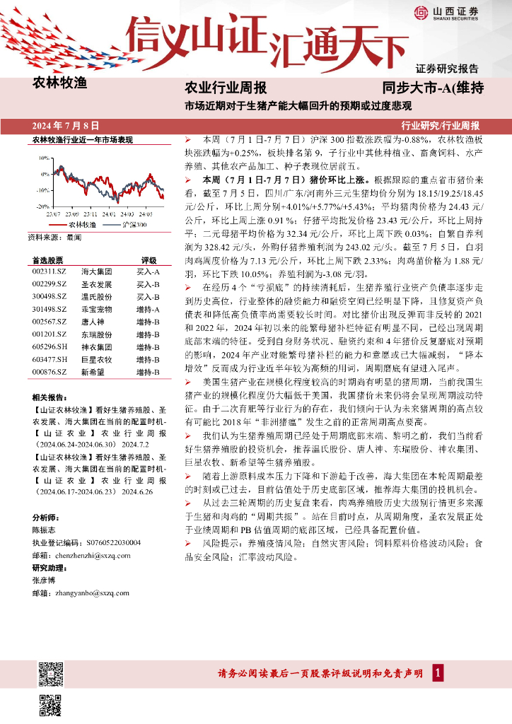 山西证券:农业行业周报:市场近期对于生猪产能大幅回升的预期或过度悲观.pdf