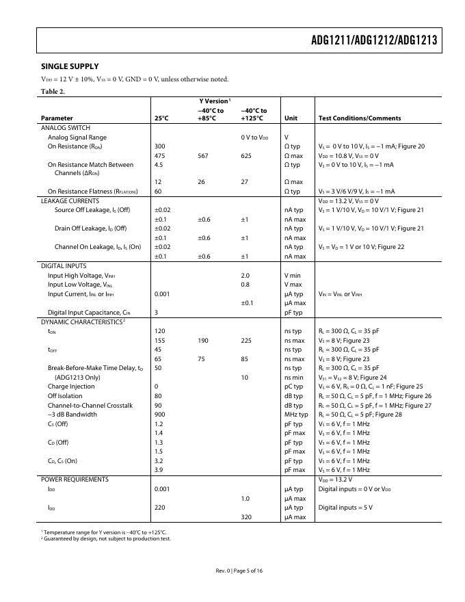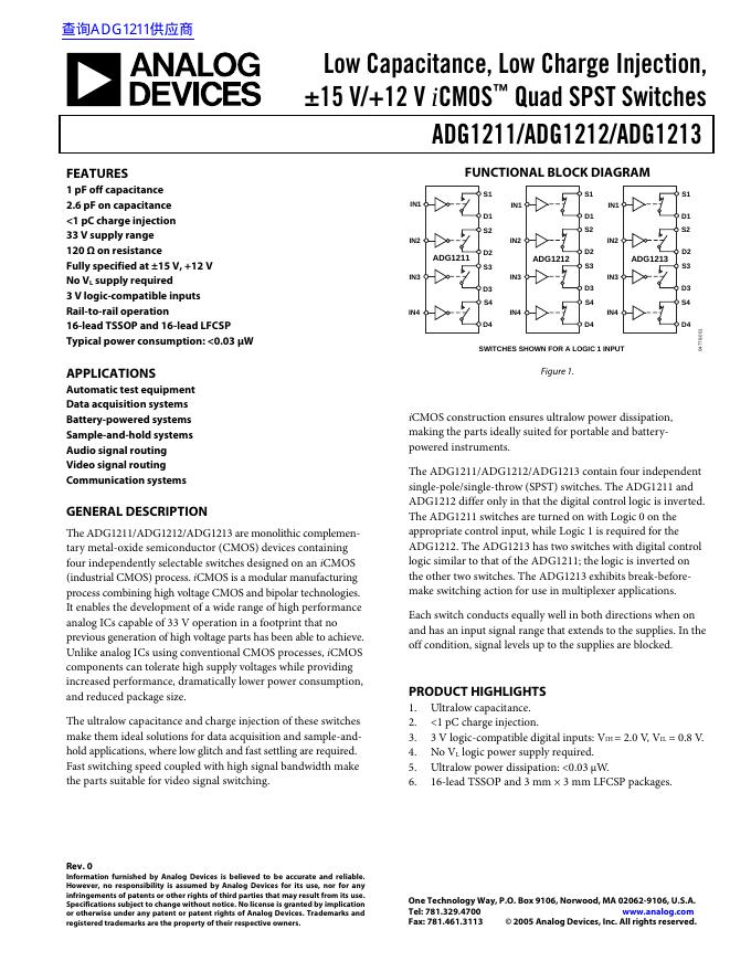 ANALOG DEVICES ADG1211/ADG1212/ADG1213 Low Capacitance, Low Charge Injection, ±15 V/12 V iCMOS, quad SPST Switches 数据手册ANALOG DEVICES ADG1211/ADG1212/ADG1213 Low Capacitance, Low Charge Injection, ±15 V/12 V iCMOS, quad SPST Switches 数据手册ANALOG DEVICES AD.pdf