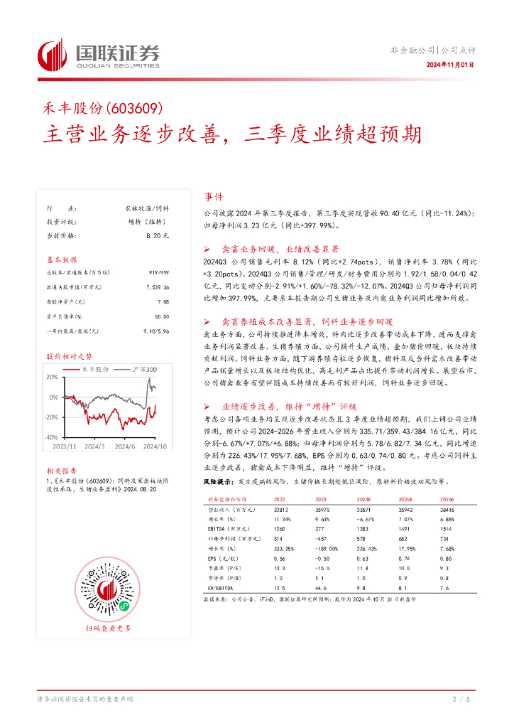国联证券:禾丰股份(603609)-主营业务逐步改善,三季度业绩超预期.pdf