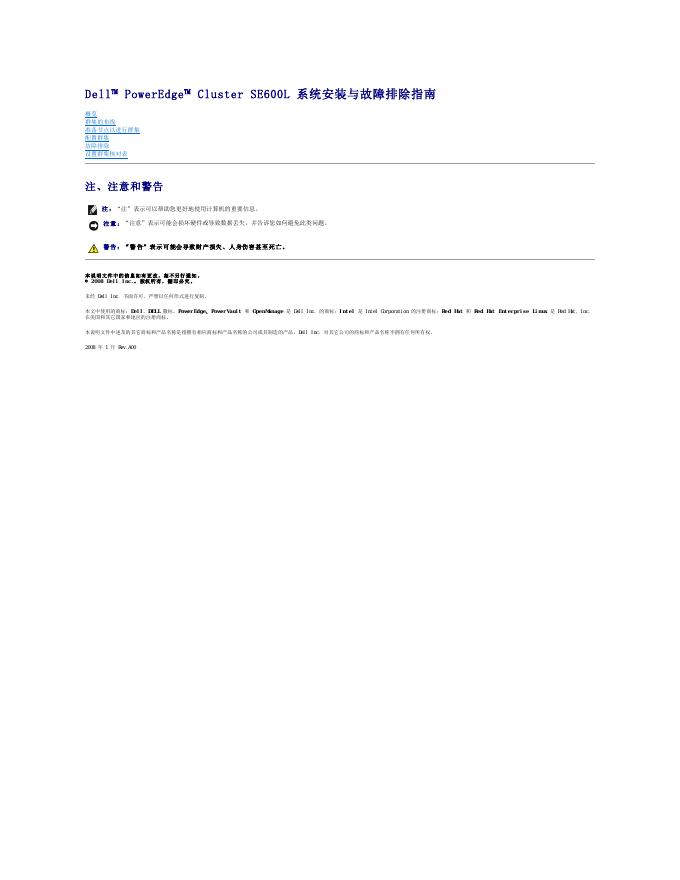 戴尔™ PowerEdge™ Cluster SE600L 系统安装与故障排除指南.pdf