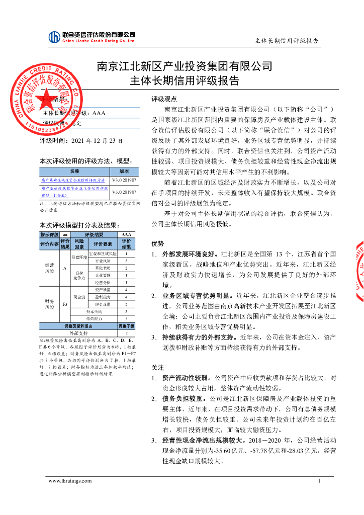 联合资信:南京江北新区产业投资集团有限公司主体长期信用评级报告.pdf